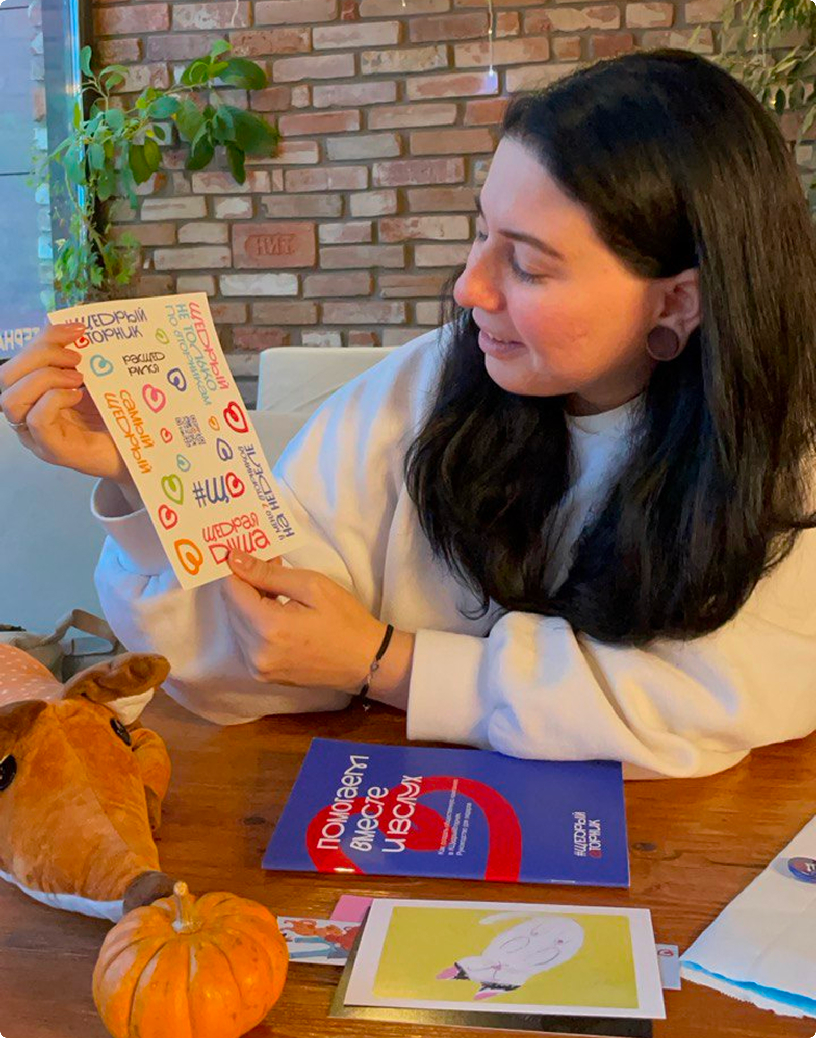 «Для продвижения „Щедрого вторника“ на площадках партнеров был важен мерч, — рассказывает Анна. — Коллеги из „Культуры благотворительности“ прислали мне материалы с символикой праздника — и я раздала их заведениям на улице Фокина. Сотрудники кафе и ресторанов раздавали информационные брошюры посетителям, клеили стикеры на коробки с едой навынос и для доставки — это помогало привлечь внимание к „Щедрому вторнику“».